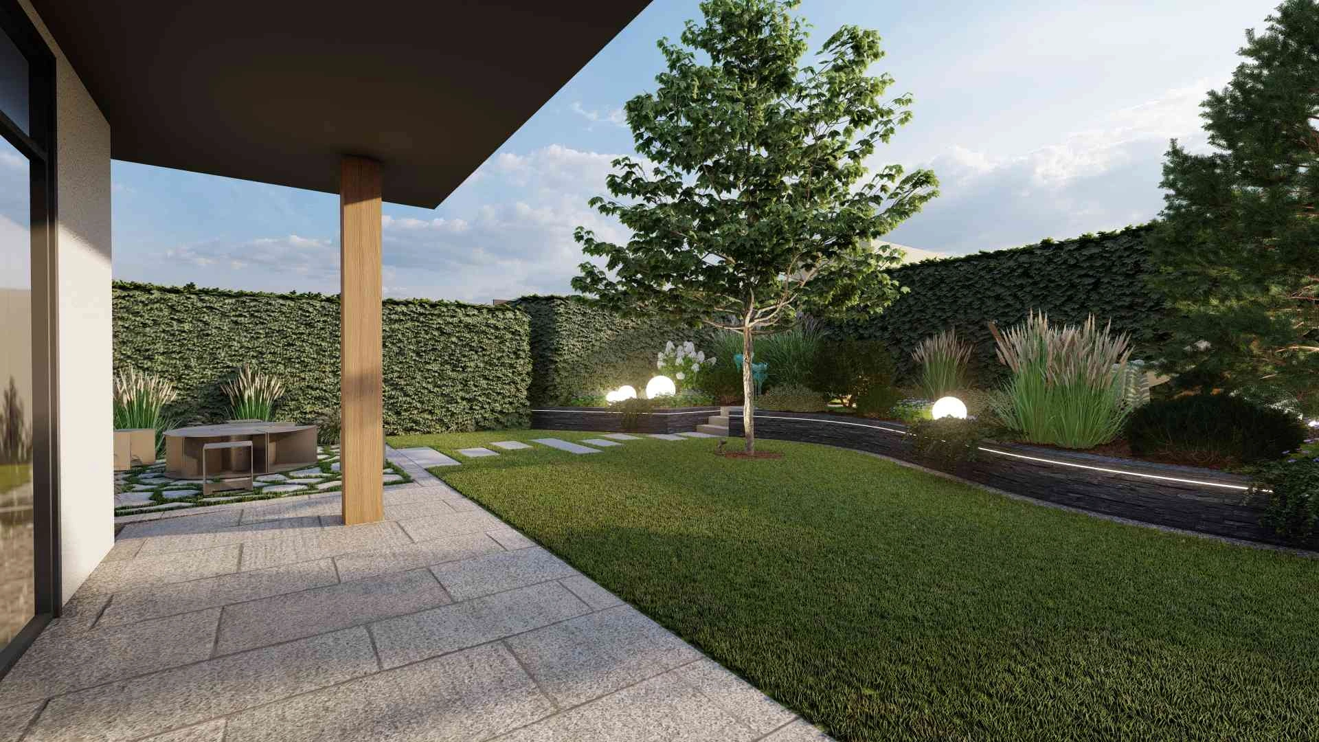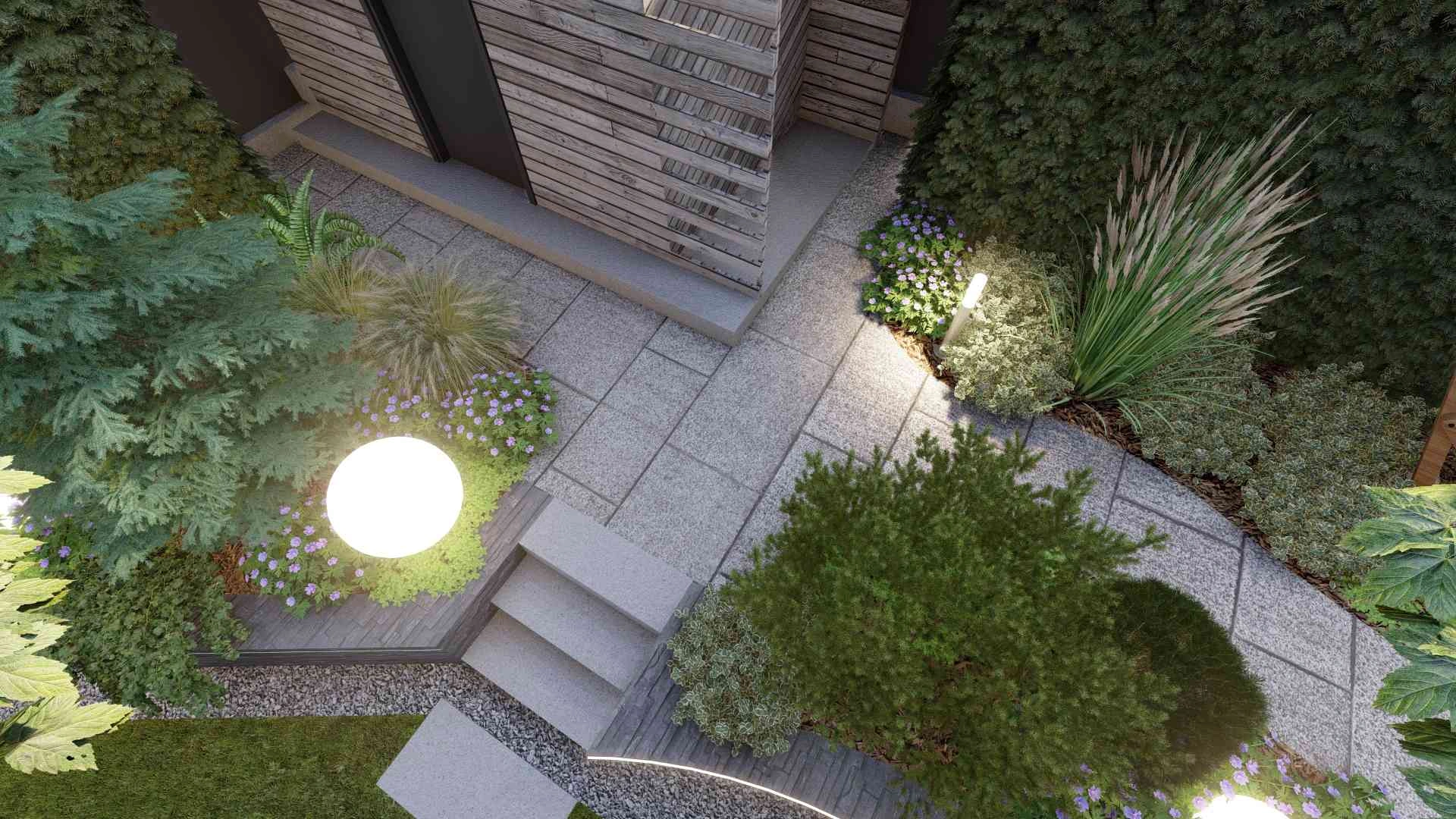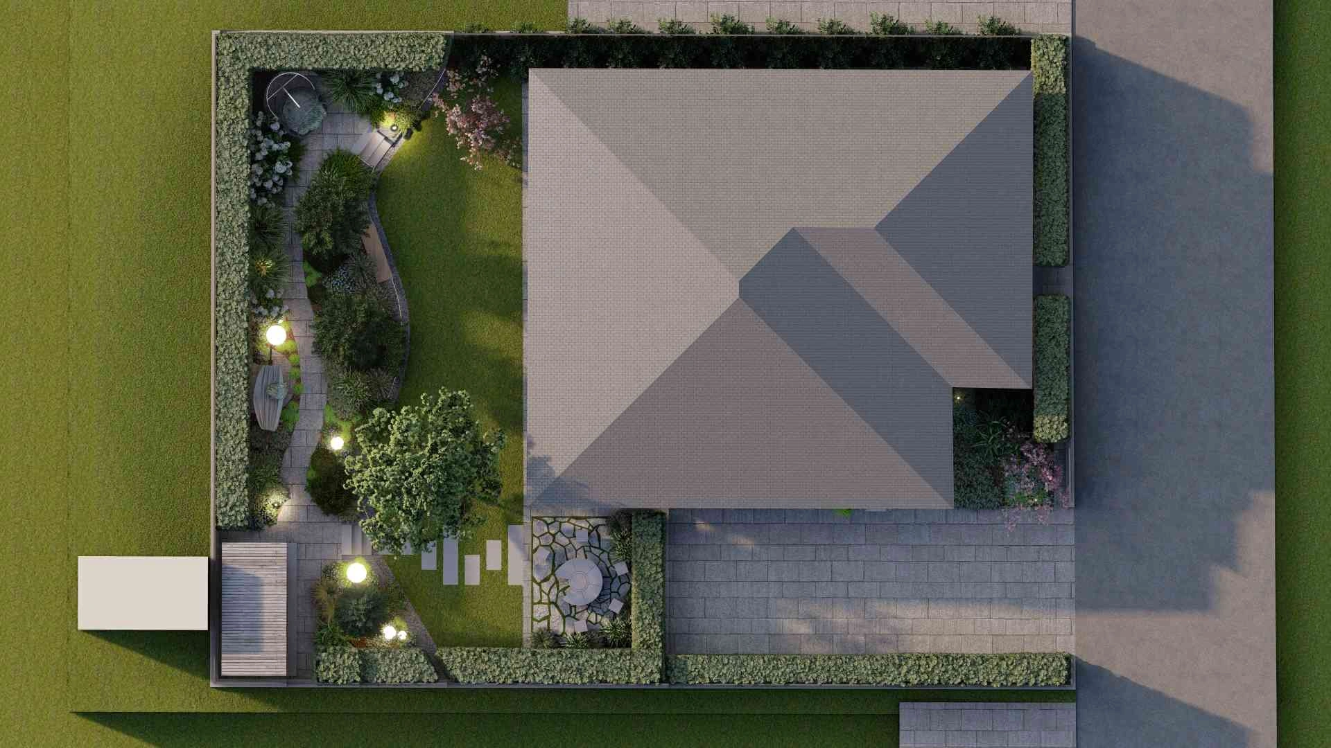 Ландшафтний дизайн розроблявся для молодої пари, що нещодавно придбала будинок. Площа всієї ділянки лише 5 соток і це було певним викликом щоб задовольнити всі потреби молодої родини.