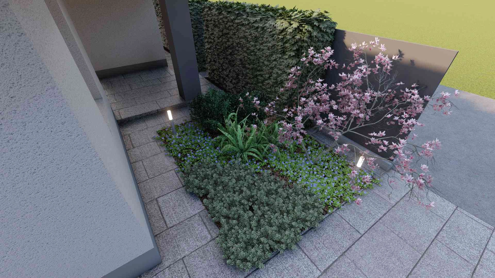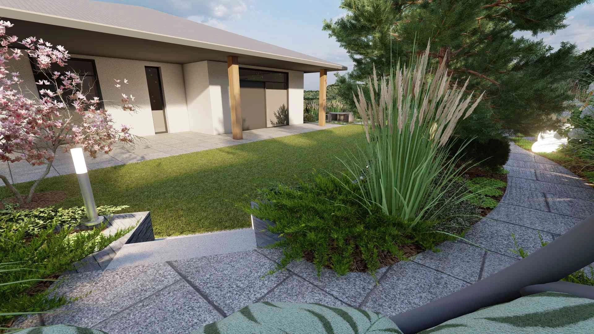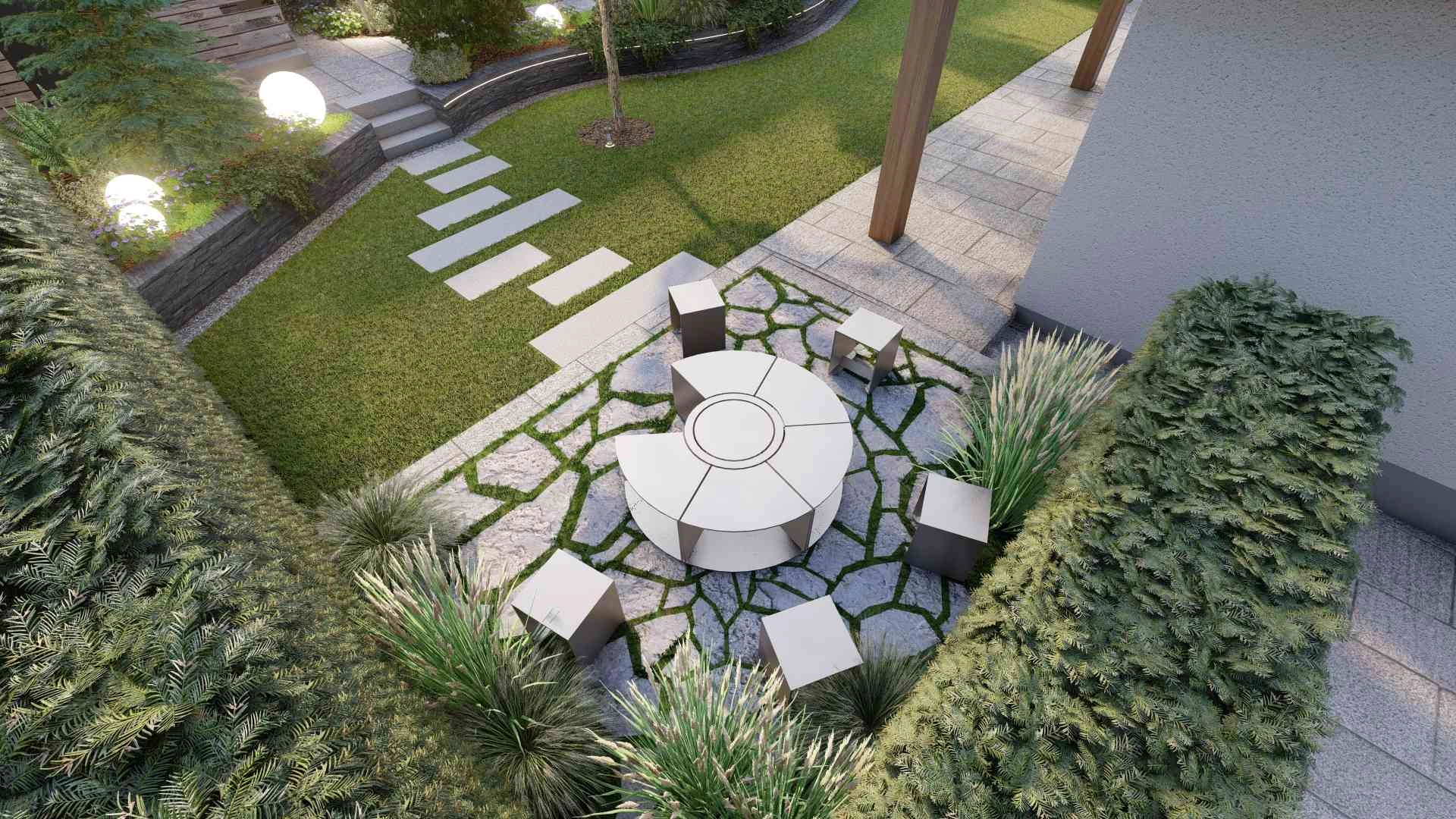Ландшафтний дизайн розроблявся для молодої пари, що нещодавно придбала будинок. Площа всієї ділянки лише 5 соток і це було певним викликом щоб задовольнити всі потреби молодої родини.