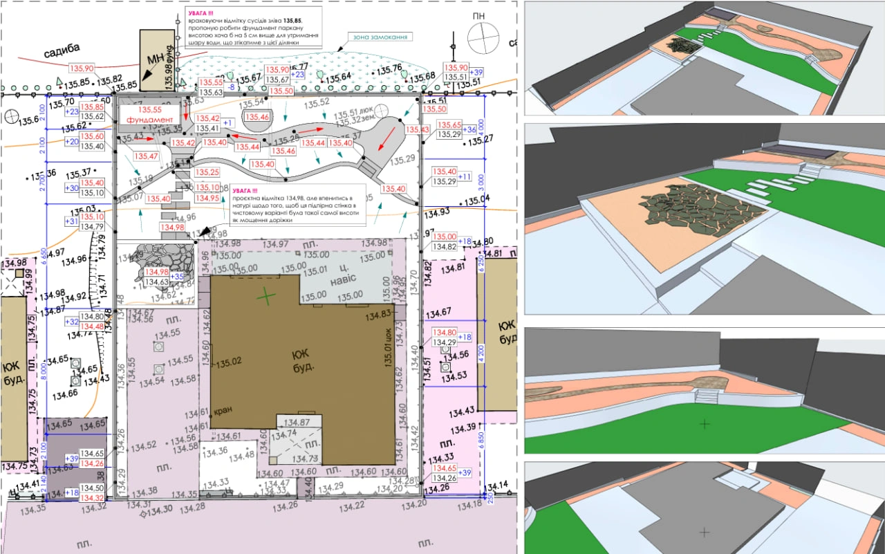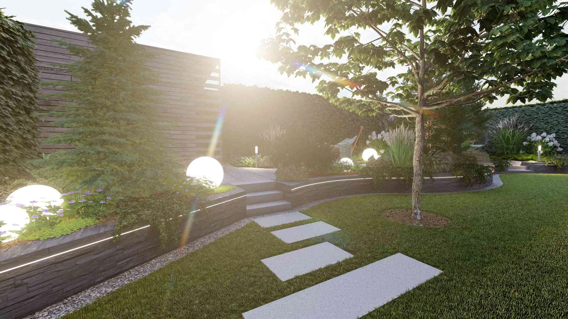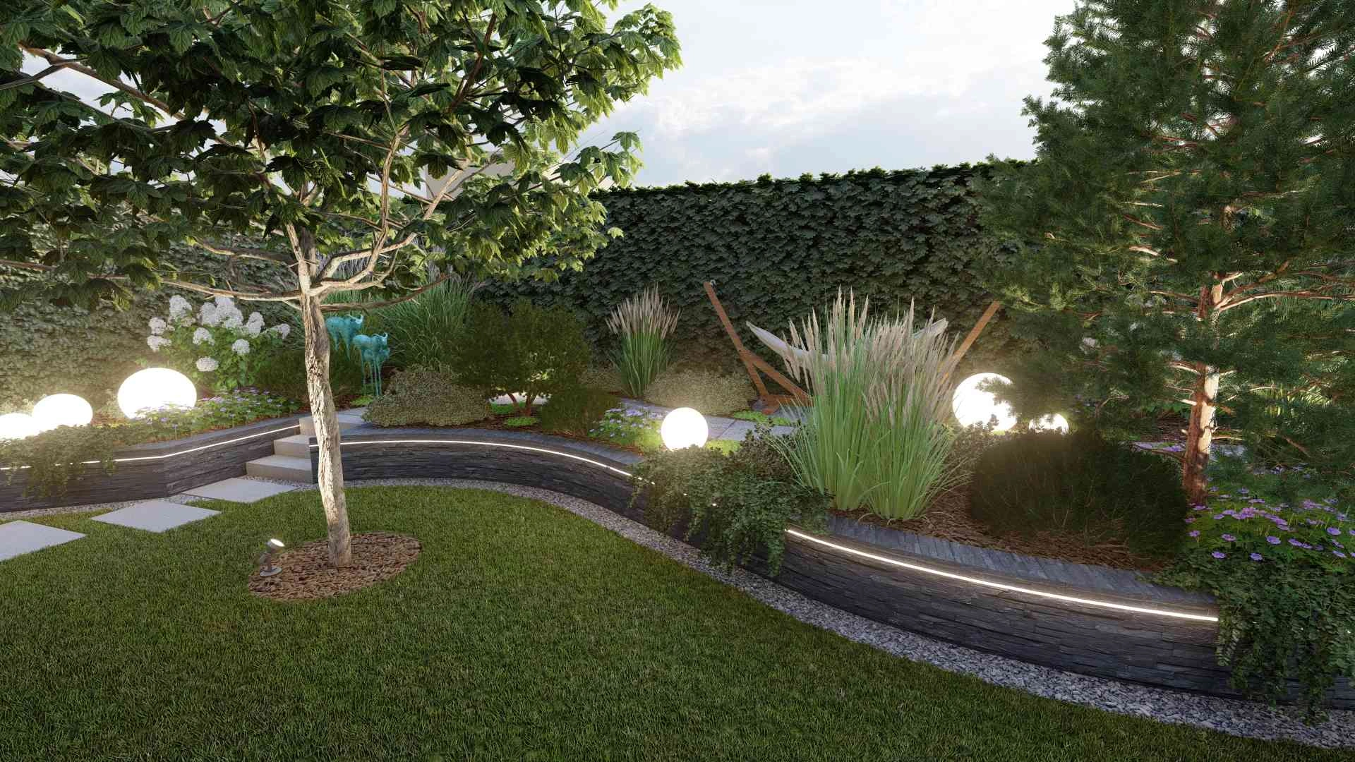 Ландшафтний проєкт був виконаний на ділянці в 5 соток. Основними завданнями було: нівелювати значний ухил грунту, відвести воду від будинку, укріпити ділянку по периметру та за допомогою ландшафтного дизайну розширити і зробити простір затишним.