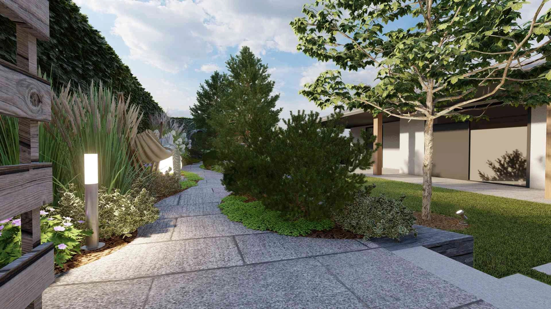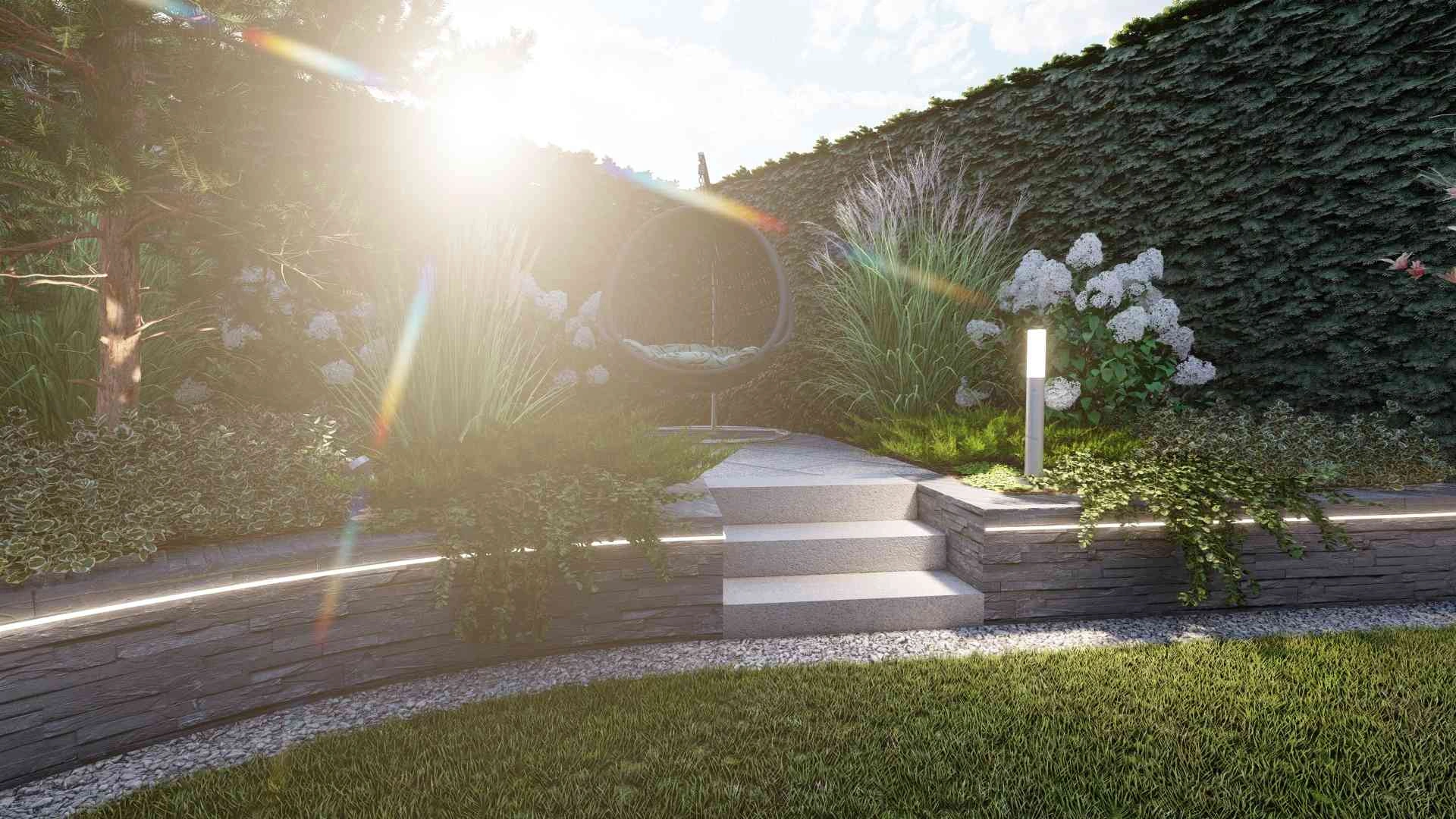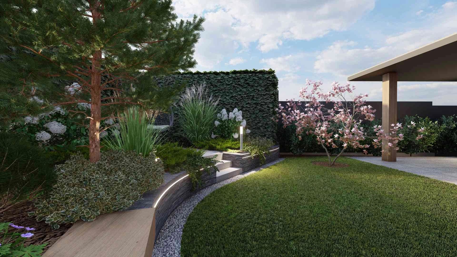 Ландшафтний проєкт був виконаний на ділянці в 5 соток. Основними завданнями було: нівелювати значний ухил грунту, відвести воду від будинку, укріпити ділянку по периметру та за допомогою ландшафтного дизайну розширити і зробити простір затишним.