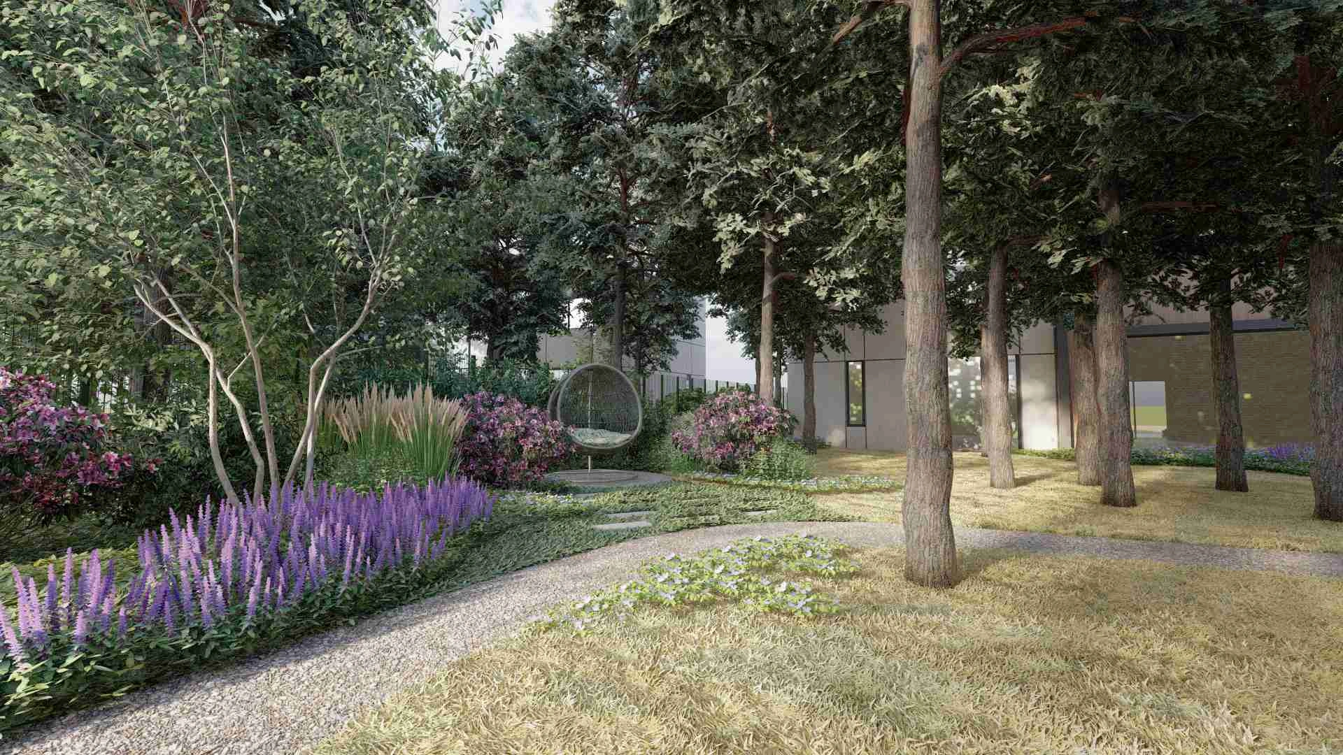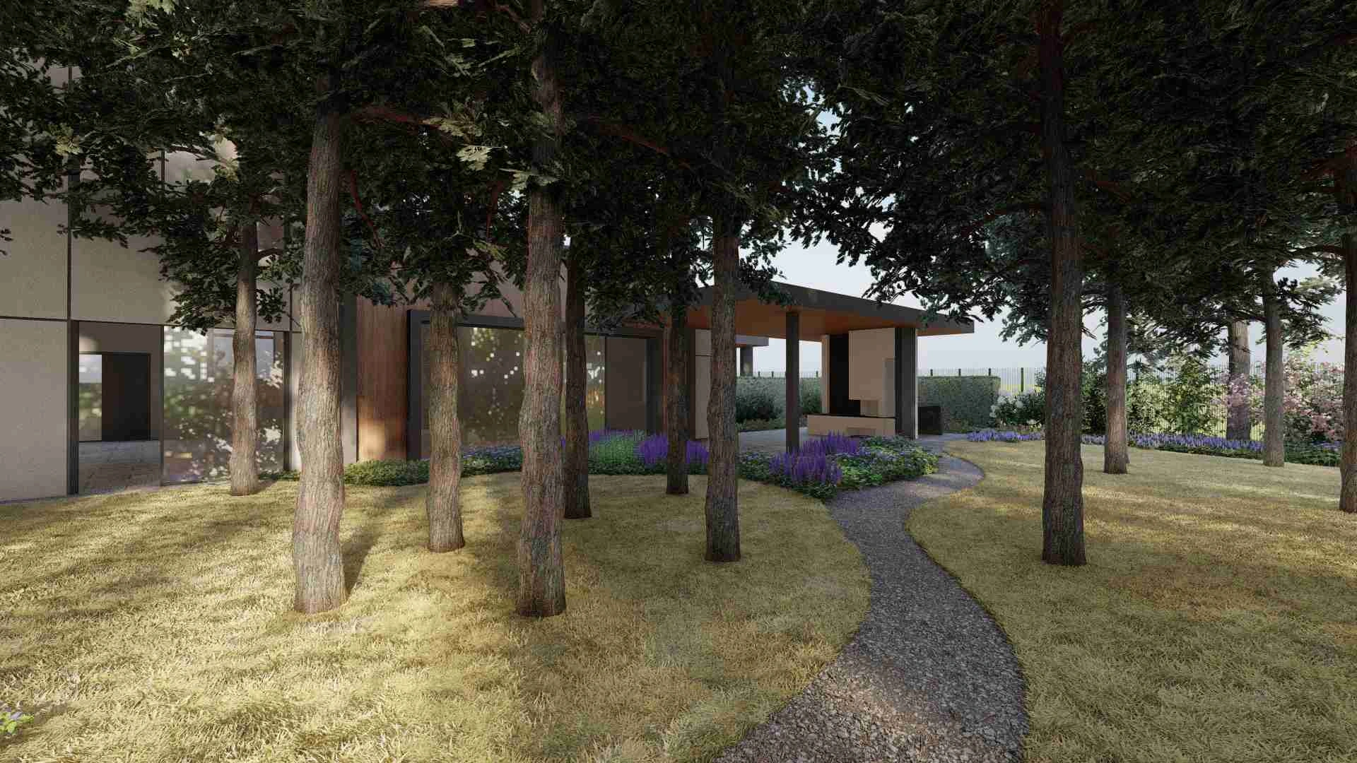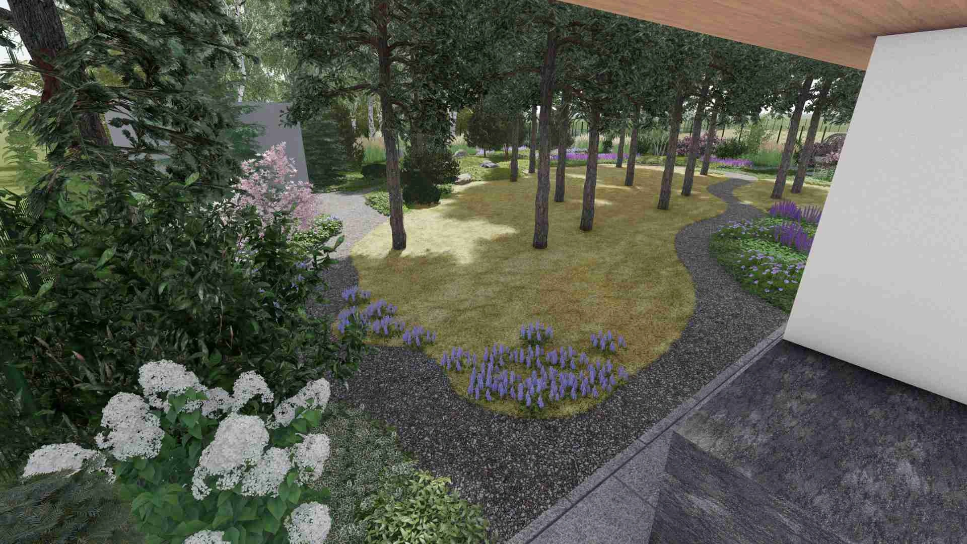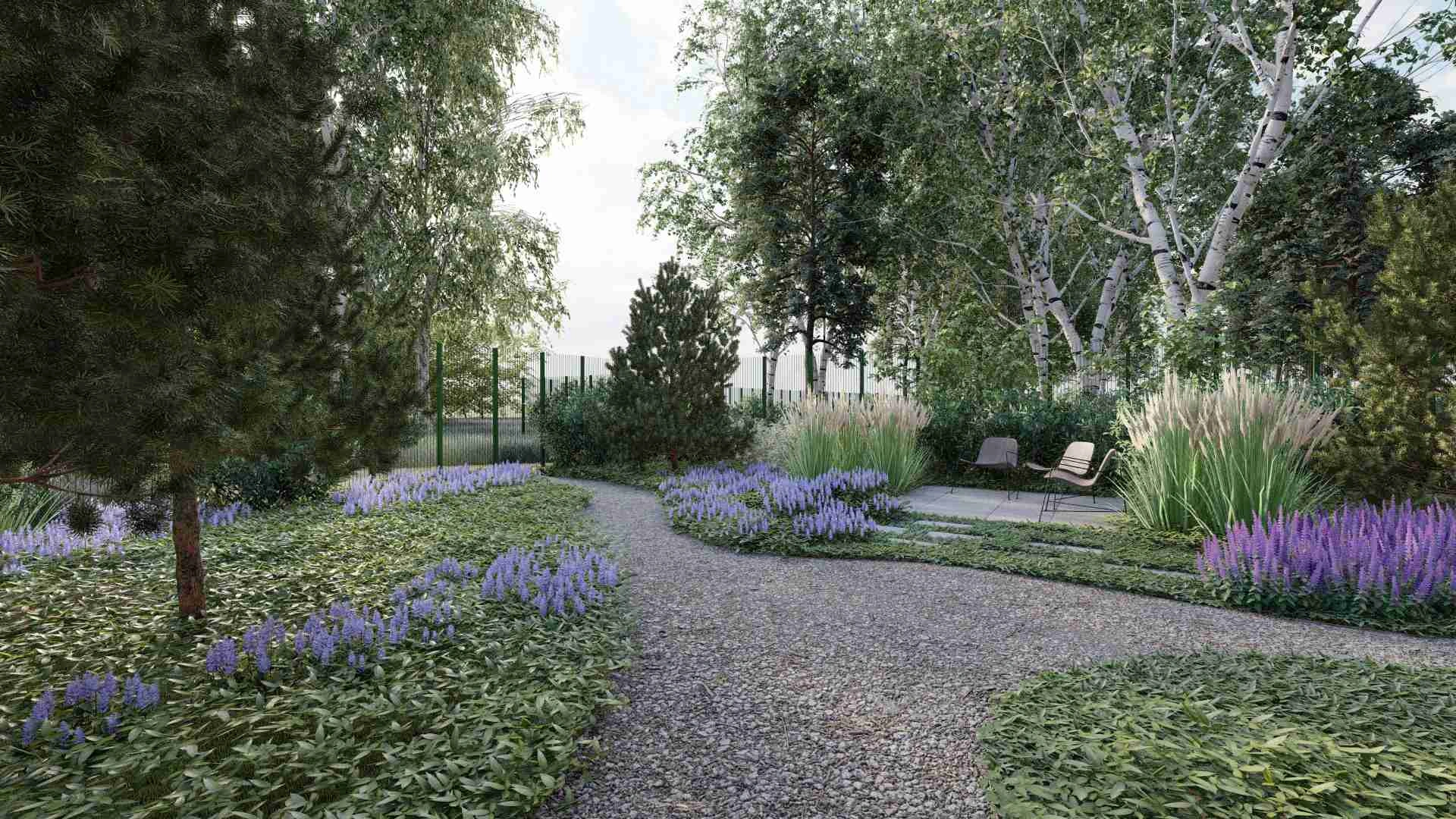 Унікальний проєкт зі збереження хвойного лісу. Без жодного клаптику газону в зоні саду та зі збереженням великої площі хвойного опаду.