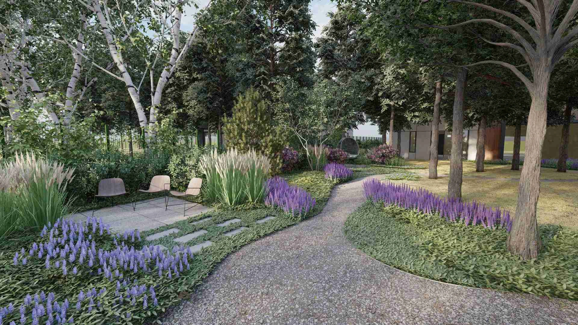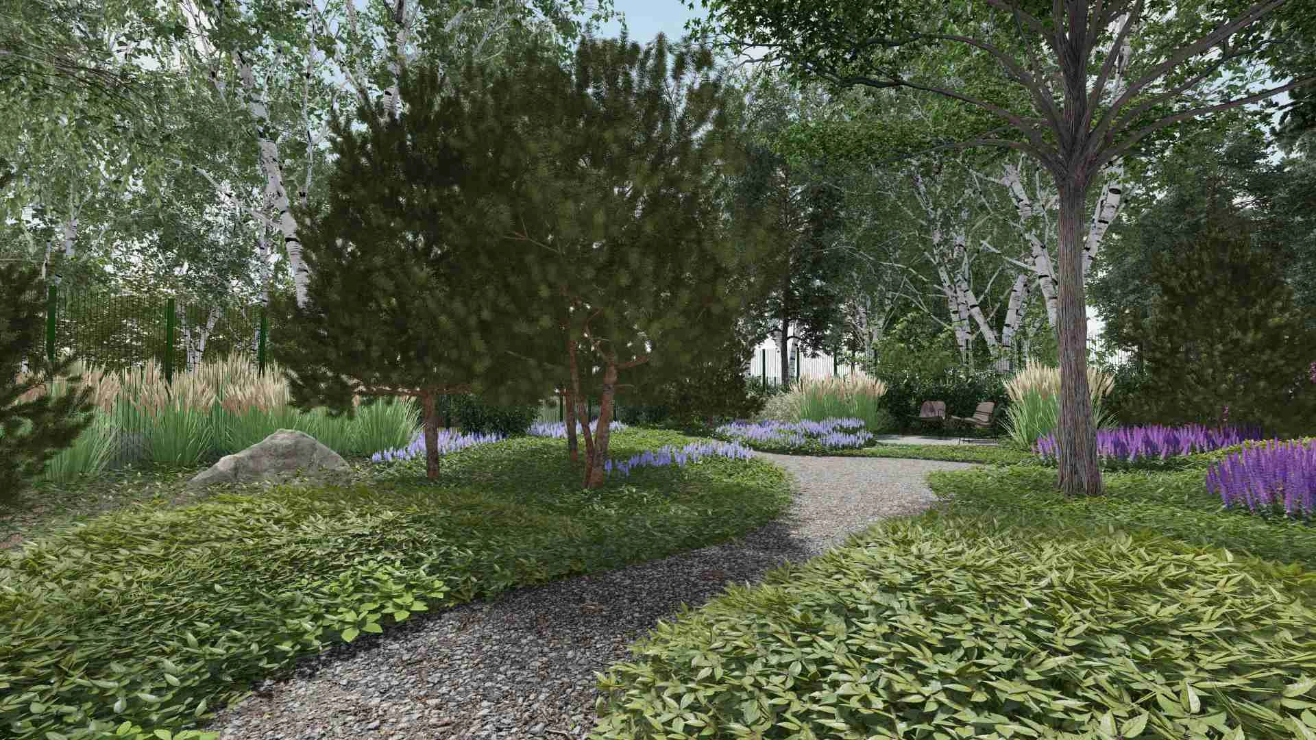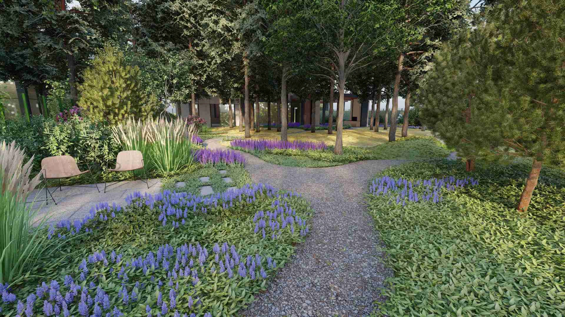 Родзинкою проєкту став килим з різноманітних рослин як шипшина, чорниця, брусниця, барвінок малий, чебрець, дзвоники лісові, анемона осіння, фізостехія і багато інших сланких рослин.