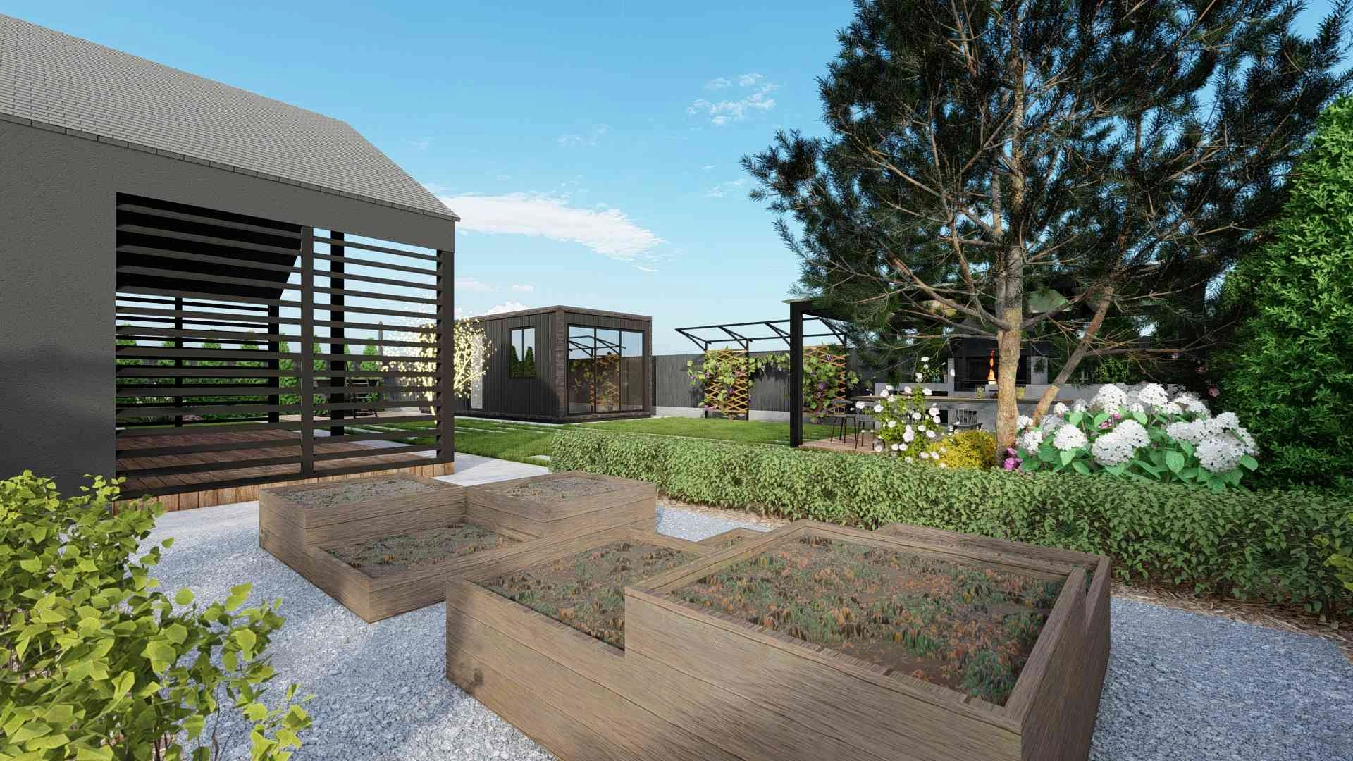 Участок в 7,5 соток в уютном коттеджном городке. Основными задачами дизайнера было создать максимально функциональное пространство для занятия садоводством и отдыхом.