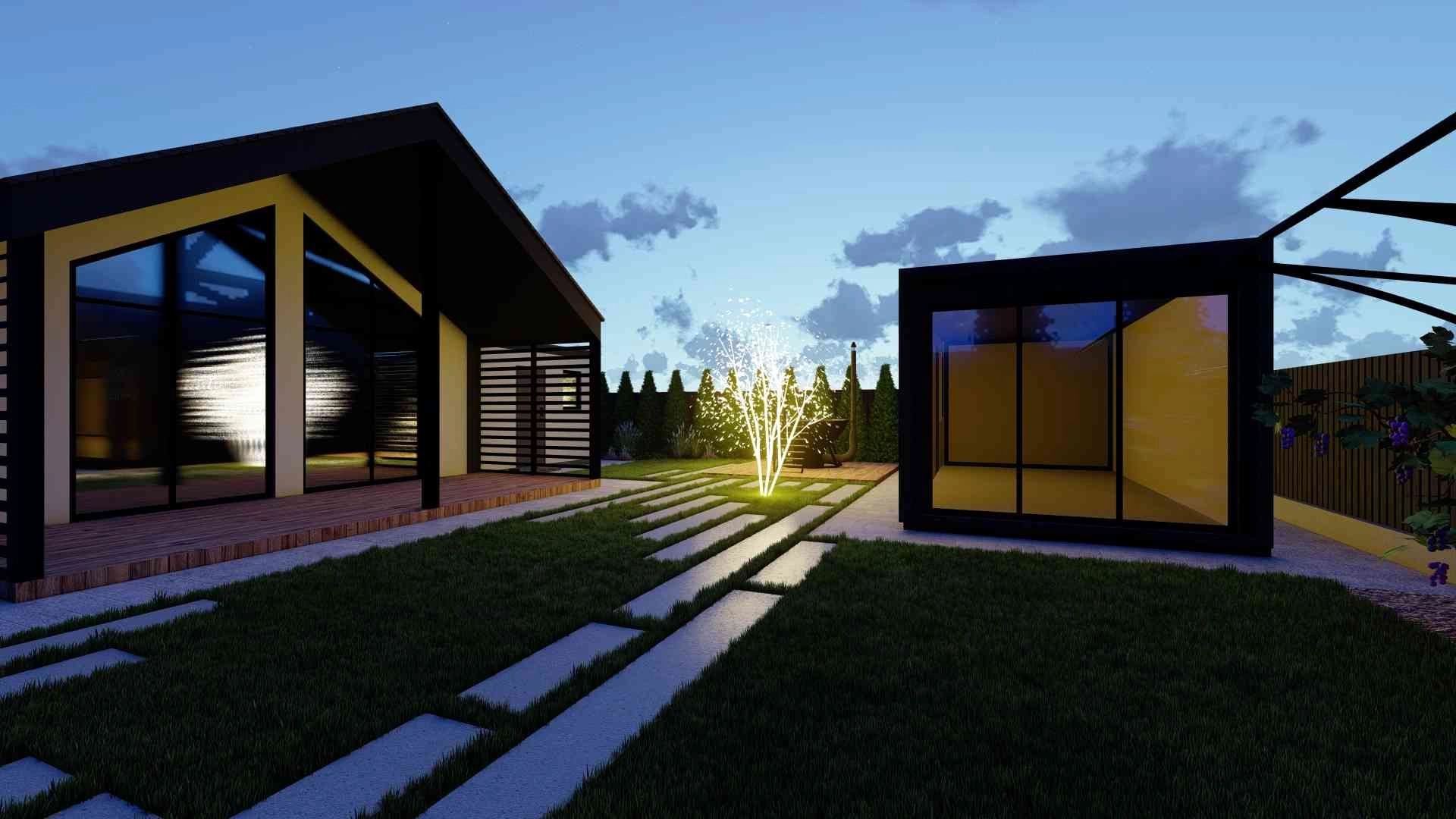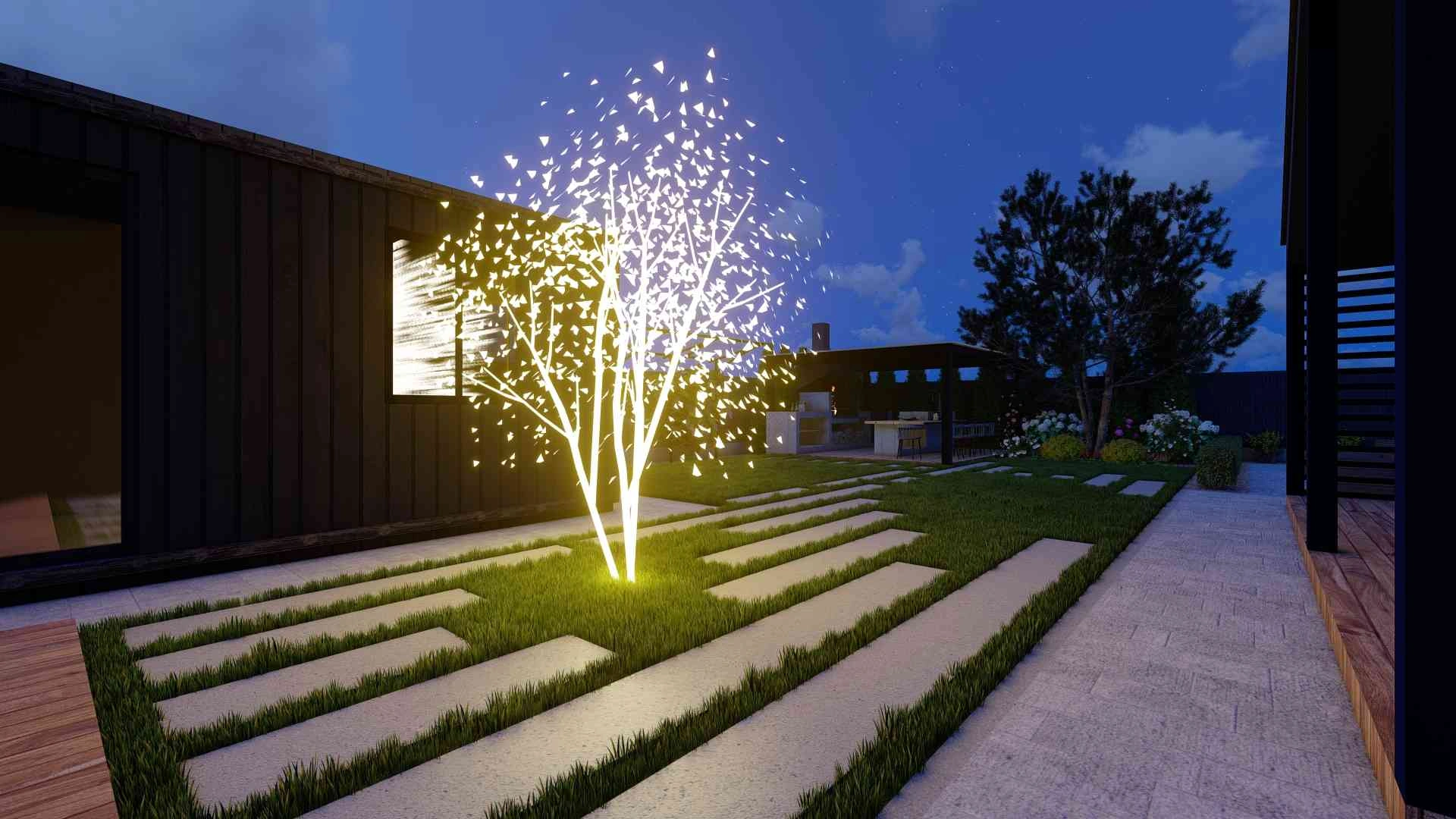 Изюминкой проекта стало уличное светодиодное дерево, которое хозяин давно мечтал иметь и, с покупкой участка, эта мечта стала реальностью!