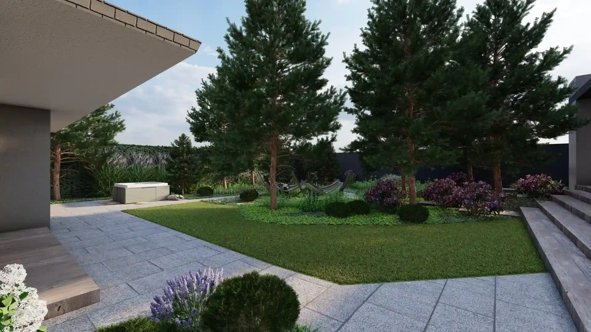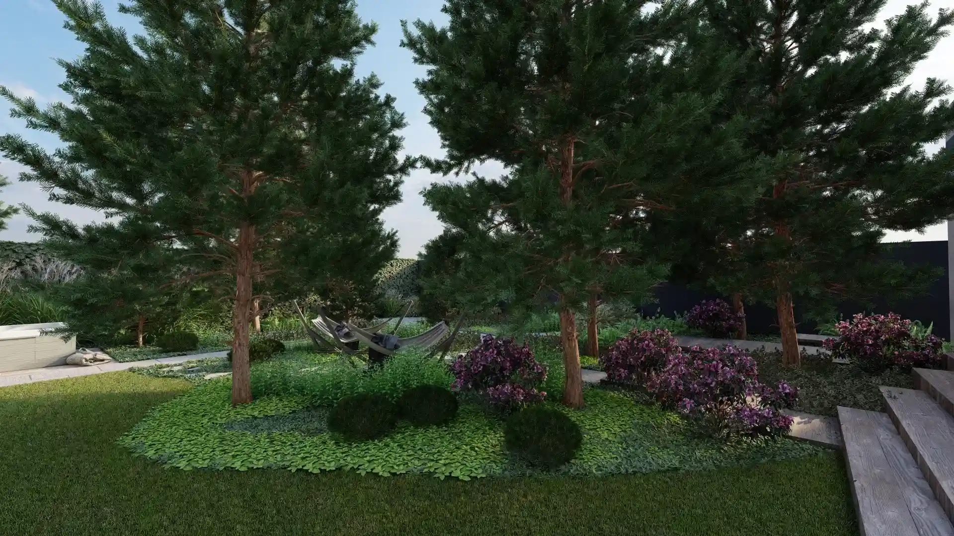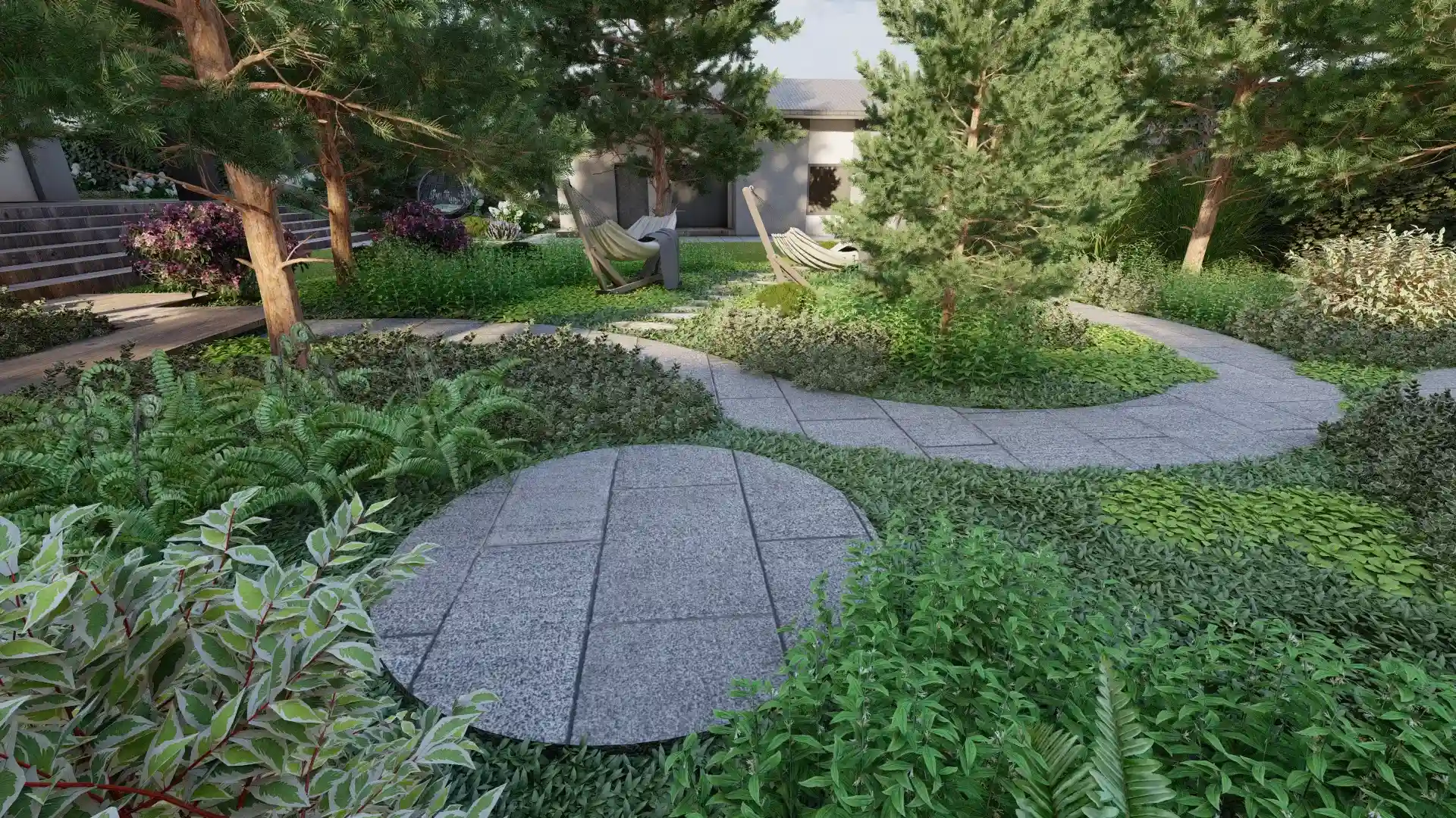- зона сада имеет наклоны в разные стороны, а чтобы визуально нивелировать это, мы использовали растения разной высоты.